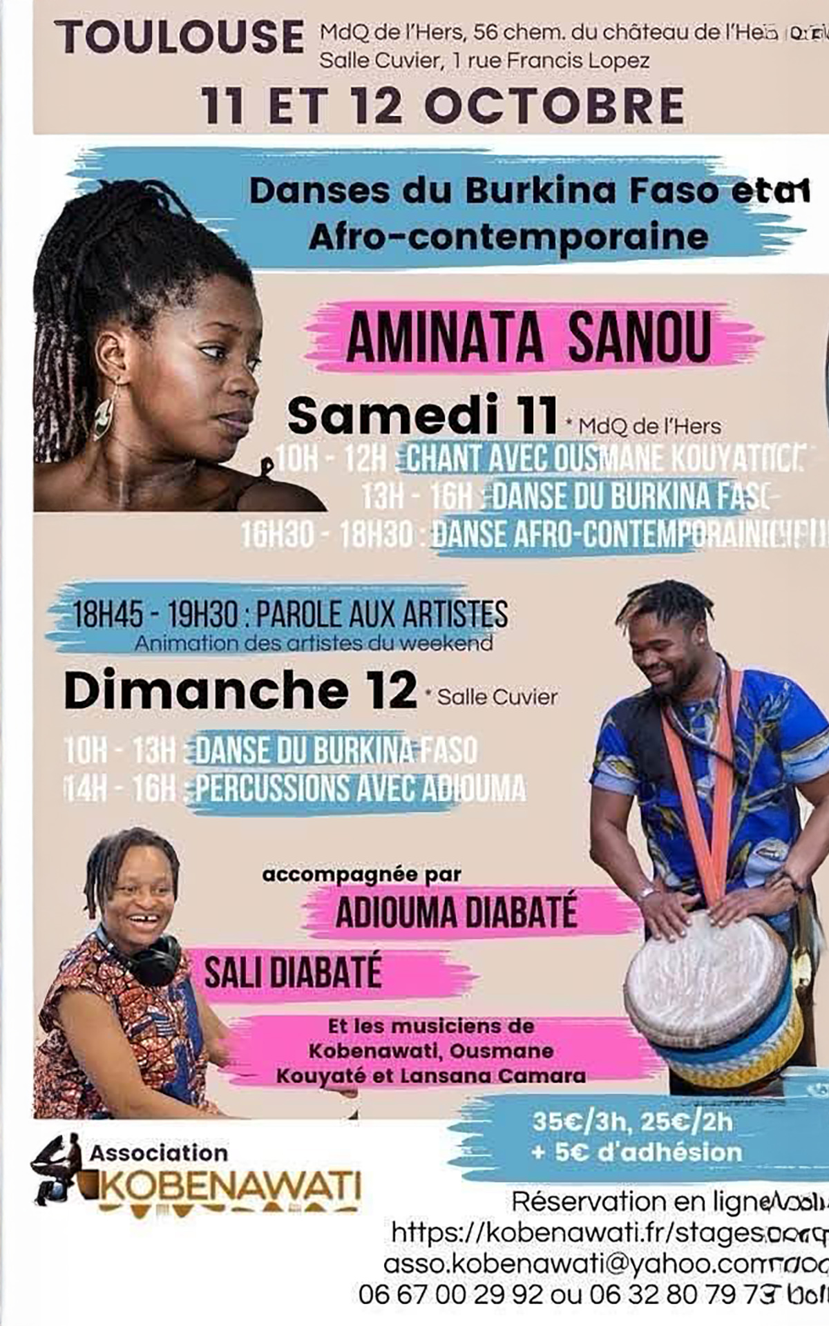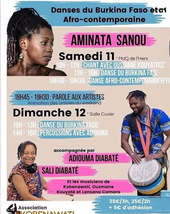 L’association Adiouma Diabate, les enfants de Bobo Dioulasso, a été créée avec pour but d’organiser des cours et des stages de percussions, des événements culturels ainsi que toute autre activité permettant de promouvoir la culture burkinabé; ainsi que de faciliter ou permettre l’accès à l’éducation
